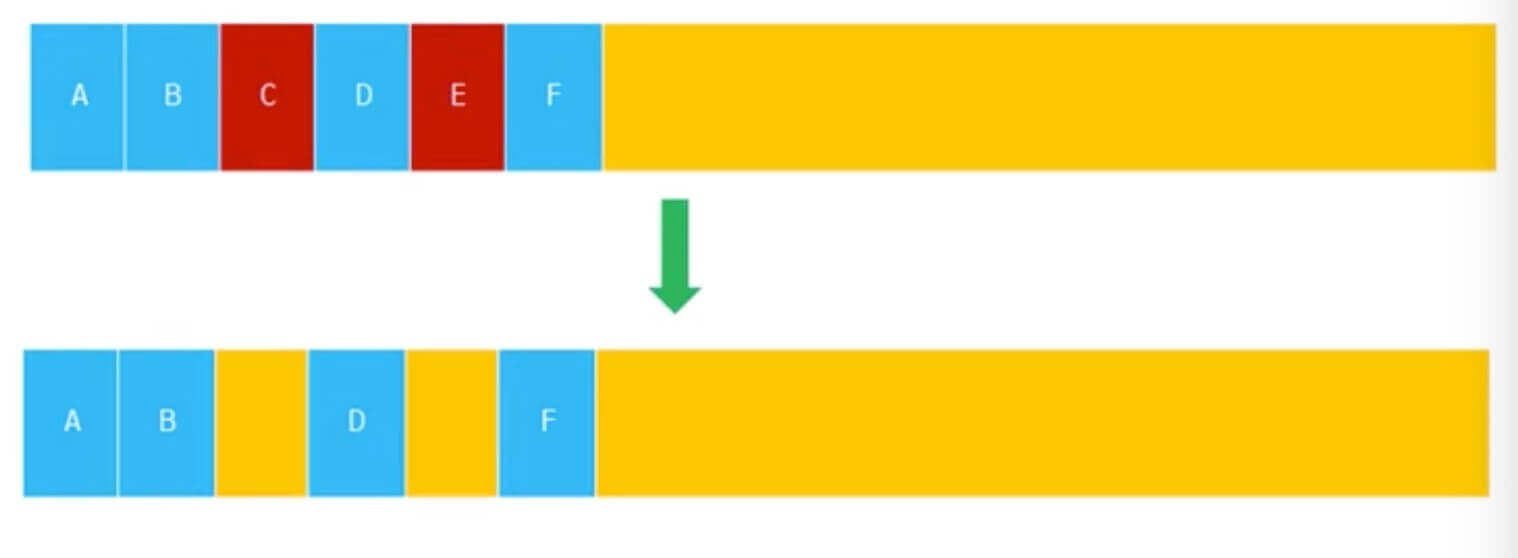 1. 标记清除(Mark Sweep) Mark Sweep 是将需要被回收的对象进行标记,在垃圾回收运行时直接释放相应的地址空间,红色的区域就是需要被回收的