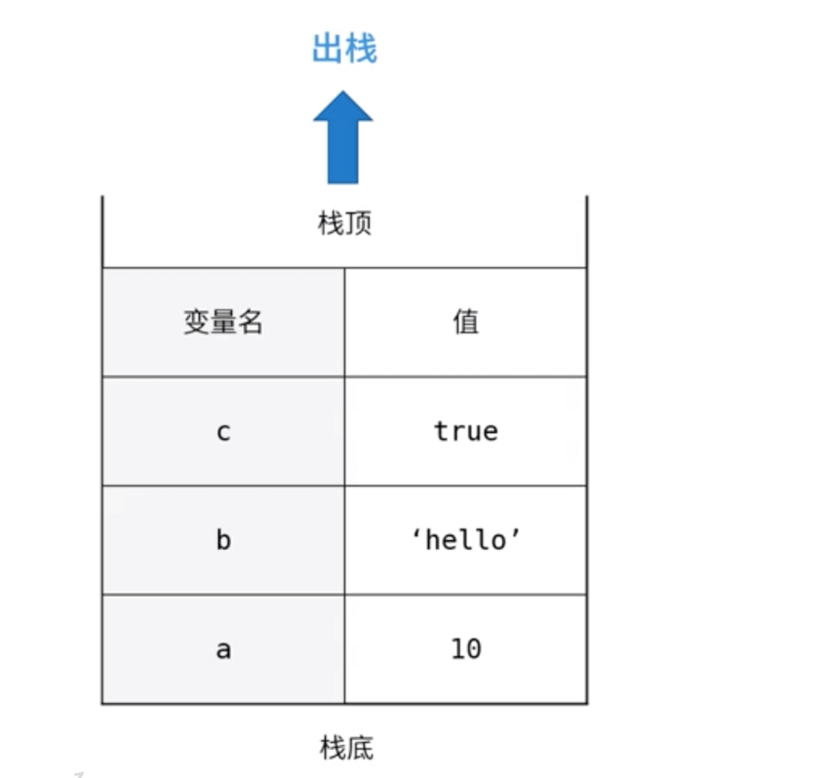 1. 栈内存:所有原始数据类型都存储在栈内存中,如果删除一个栈原始数据,遵循先进后出;如下图:a 最先进栈,最后出栈。